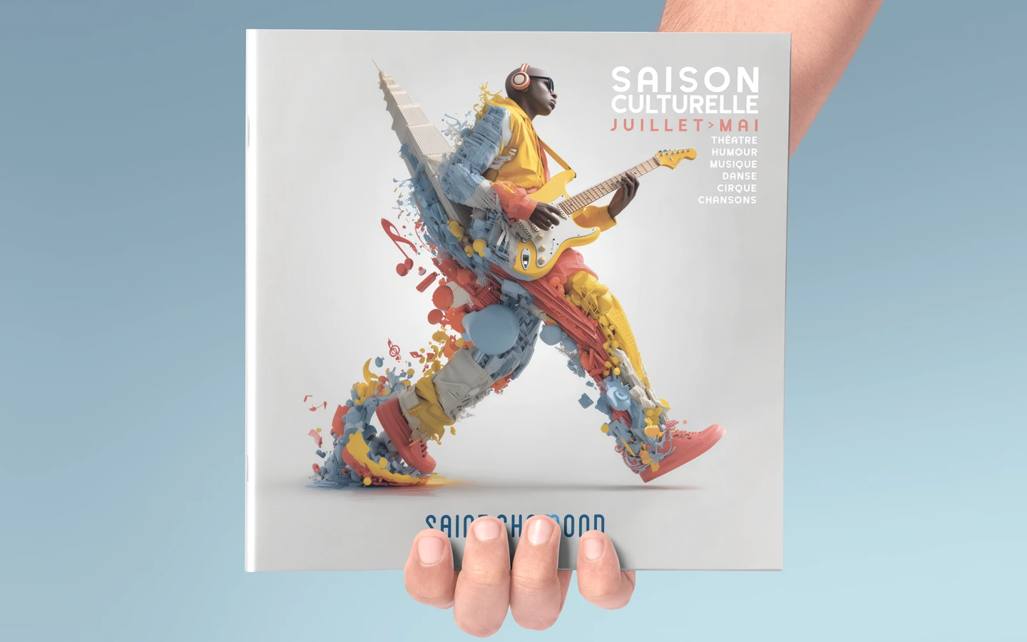Pour Saint-Chamond, la culture n'est pas qu'un agenda, c'est un signal de vitalité. Mon objectif : traduire cette énergie en une ligne graphique qui ne demande pas la permission d'exister. On a misé sur des typographies expressives et une palette de couleurs dynamique pour réveiller les codes habituels de la ville. C’est une mise en page qui respire, pensée pour l’impact visuel autant que pour la clarté. L’idée était simple : si l’affiche donne envie de s’arrêter, le pari est à moitié gagné. Résultat ? Une saison culturelle qui s’affiche fièrement et qui reconnecte les habitants avec leur scène locale.