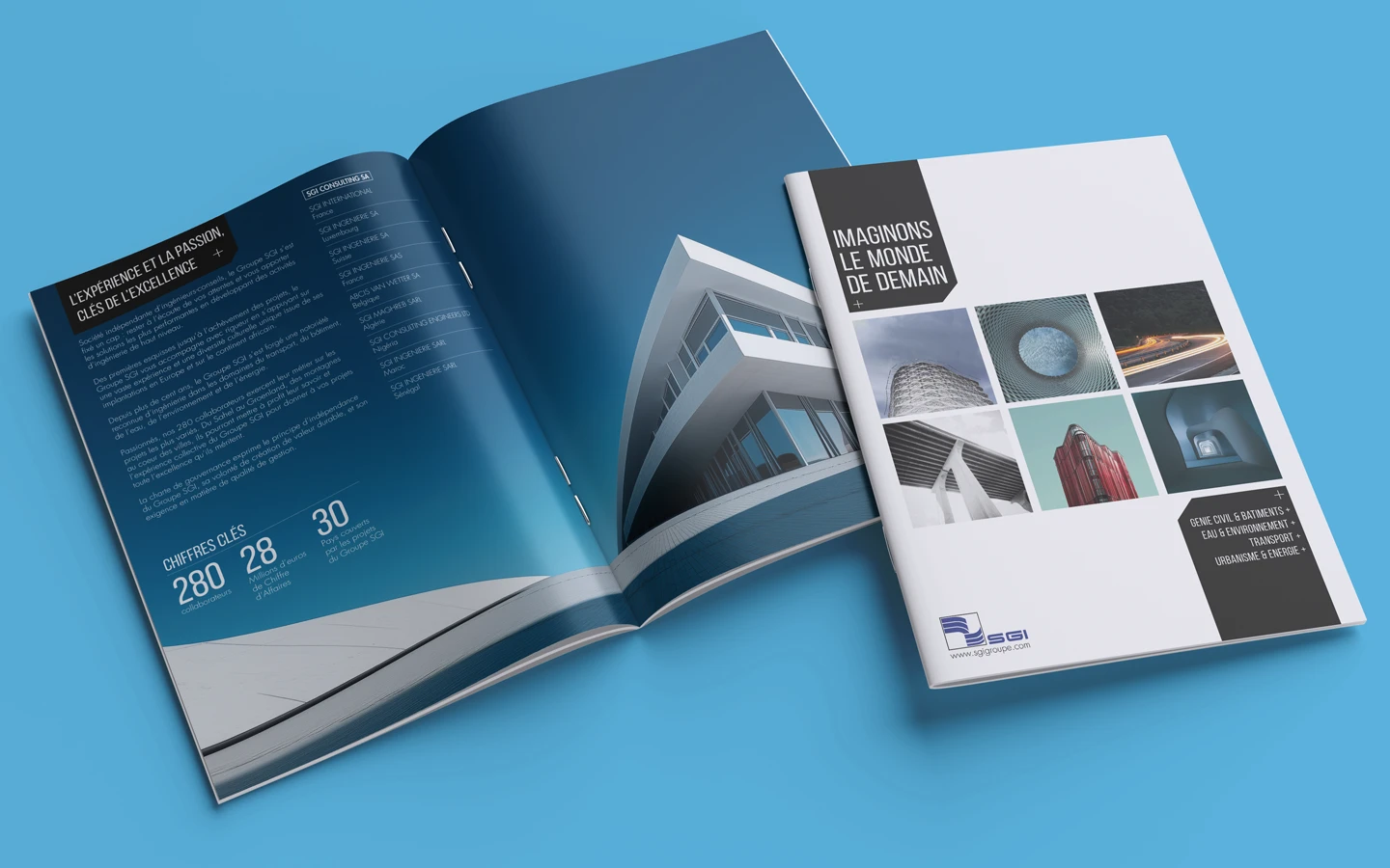 Travailler pour un groupe comme SGI, c’est manipuler de la matière brute : des projets d’envergure, une présence internationale et une expertise technique pointue. Mon défi ? Traduire cette complexité en une narration fluide. Pour cette plaquette, j’ai conçu une esthétique très structurée, presque architecturale. L’idée était de refléter la rigueur de l’ingénieur tout en rendant l’information accessible. Photos de chantiers monumentaux, infographies épurées et cartes stratégiques : chaque élément a sa place dans ce système visuel. On a aussi profité de ce projet pour muscler la charte graphique globale, assurant une cohérence parfaite du Luxembourg jusqu’à l’international.